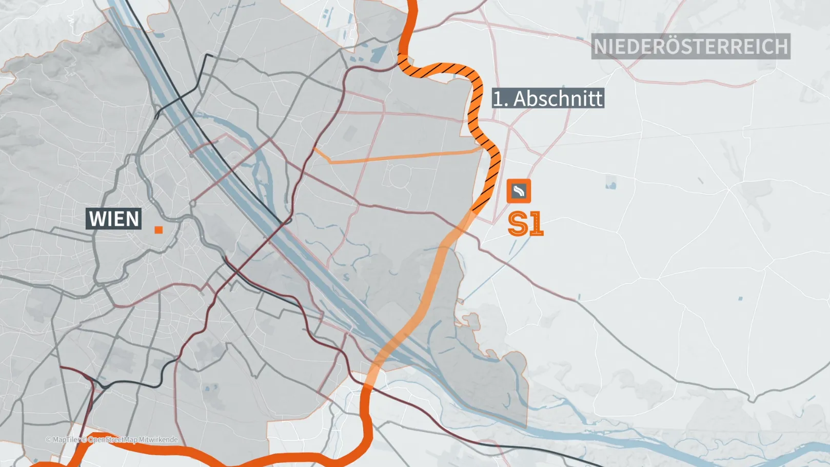 Das Projekt S 1 ist in zwei Abschnitte unterteilt: Der erste Teil verläuft von Süßenbrunn bis Groß-Enzersdorf. Bereits mit diesem ersten Teil der S 1 werden Tausende Menschen in Wien und den umliegenden Gemeinden entlastet werden. Zur Anbindung der S 1 an das bestehende Wiener Straßennetz wird die Spange Seestadt Aspern errichtet.