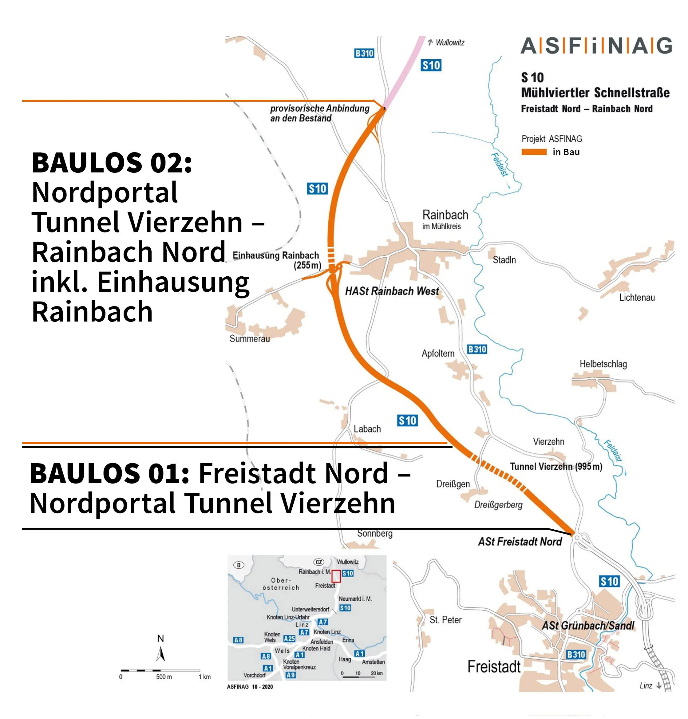 Ende 2015 hat die ASFINAG die S 10 Mühlviertler Schnellstraße von Unterweitersdorf bis Freistadt für den Verkehr freigegeben. Seit Ende 2023 läuft der Weiterbau der Strecke nach Norden: dieser weitere sieben Kilometer lange Teilabschnitt wird bei der Anschlussstelle Freistadt Nord am Ende der bereits bestehenden S 10 beginnen und nördlich der Ortschaft Rainbach enden. Die Trasse umfährt Vierzehn und Rainbach und mündet dann in die bestehende B 310. Diese Westumfahrung von Rainbach bringt somit enorme Verkehrsentlastung in den Ortschaften. Das letzte knapp neun Kilometer lange Teilstück bis zur Staatgrenze bei Wullowitz wurde im Oktober 2025 zur Umweltverträglichkeitsprüfung (UVP) eingereicht.