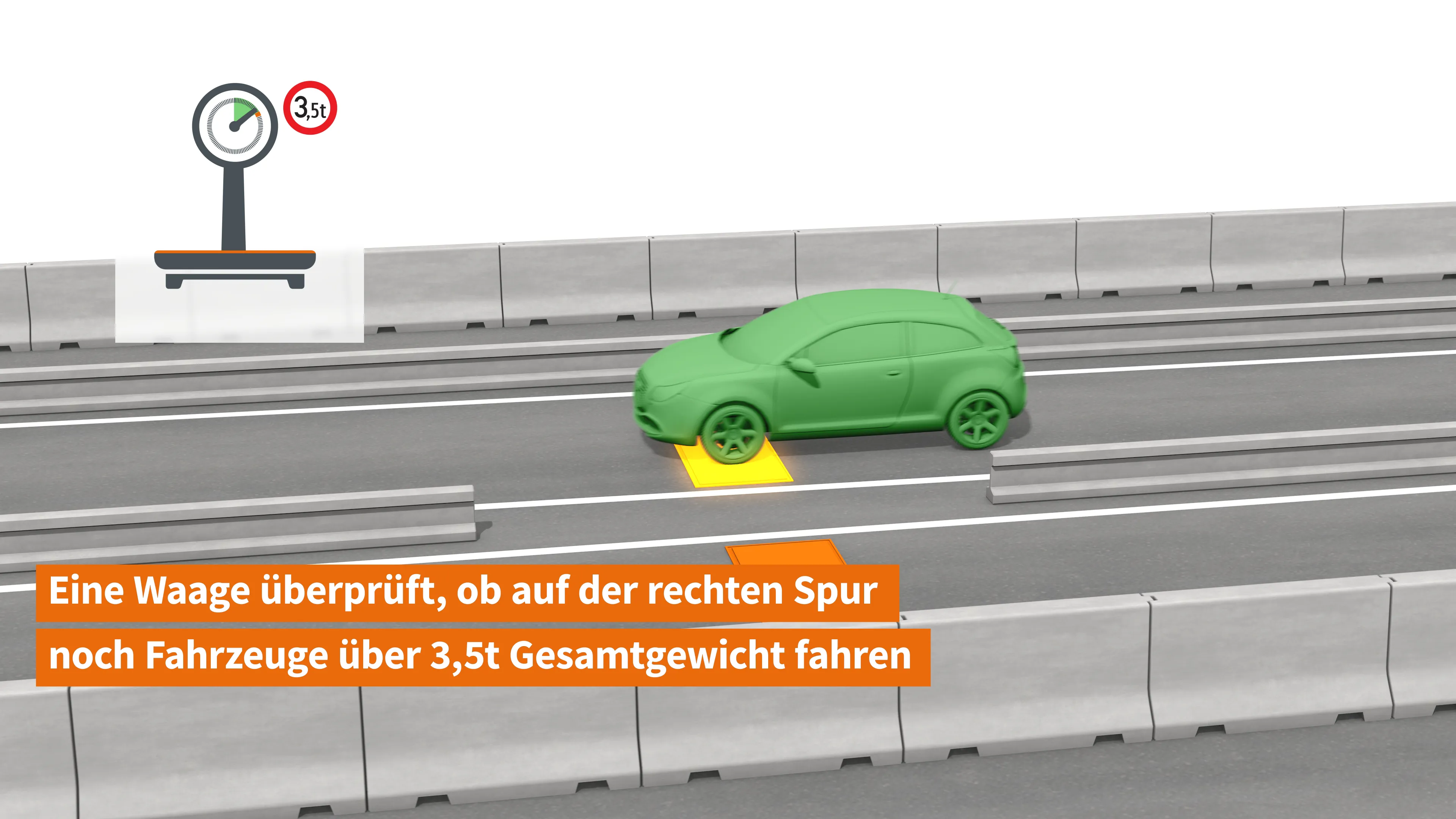 Dabei müssen alle schweren Fahrzeuge mit einem Gewicht über 3,5 Tonnen (z.B. Lkw, Busse, Wohnmobile) auf die linke und somit innere Fahrspur wechseln. Pkw und Wohnwagen-Gespanne können beide Fahrspuren wie bisher auch nützen. Ein wissenschaftlicher Testbetrieb hat gezeigt, dass diese innovative Zweispurigkeit funktioniert. Damit wird das Tragwerk entlastet.