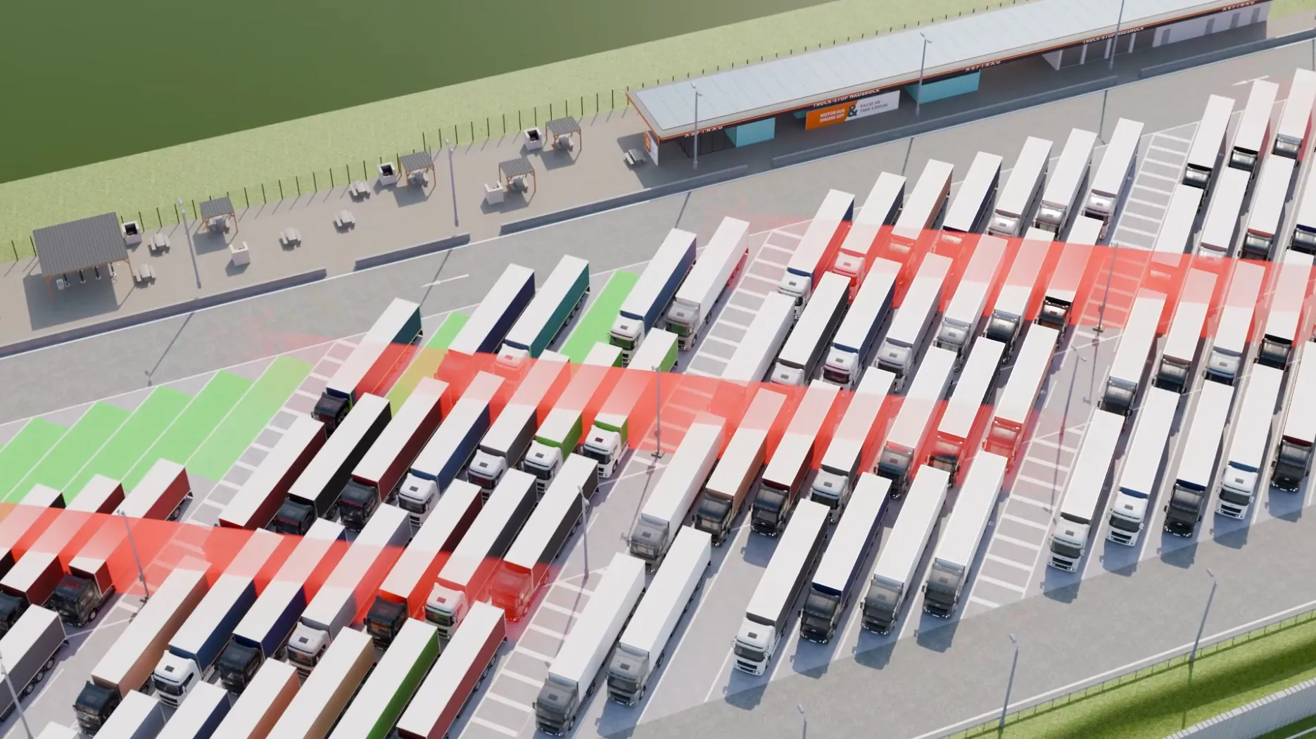 Bei Einfahrt gibt man am Bildschirm neben dem Schranken an, wann man wieder abfahren möchte, ob man einen Anschluss zum Kühlen der Ladung braucht, eine E-Ladesäule oder ob man Gefahrengut geladen hat. Dann weist das System einen Stellplatz zu und druckt einen Zettel mit Reihe und Anfahrt aus. Man parkt auf dem zugewiesenen Stellplatz und fährt zur angegebenen Zeit wieder ab. Das System ist so programmiert, dass zwischen zwei Fahrzeugen, die hintereinanderstehen, immer ca. 20 Minuten Unterschied in der Abfahrtszeit bestehen.