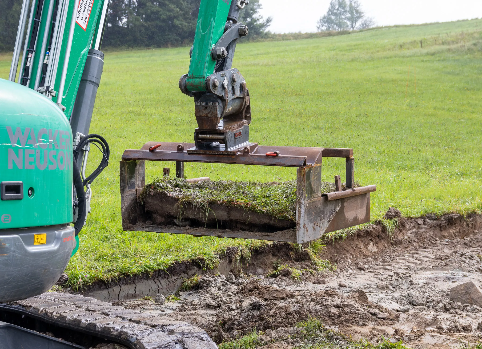 Im Mühlviertel erfolgt die Verlegung der Soden durch eine Spezialanfertigung. Diese werden nach der Entnahme mit einer Tiefe von rund 30 Zentimetern zusammen mit speziell angefertigten Ausstechformen auf einen Hänger verladen und so zu den Zielflächen transportiert. Dort werden sie von der Ausstechform direkt passgenau und fugenlos in die vorbereiteten Vertiefungen gelegt.