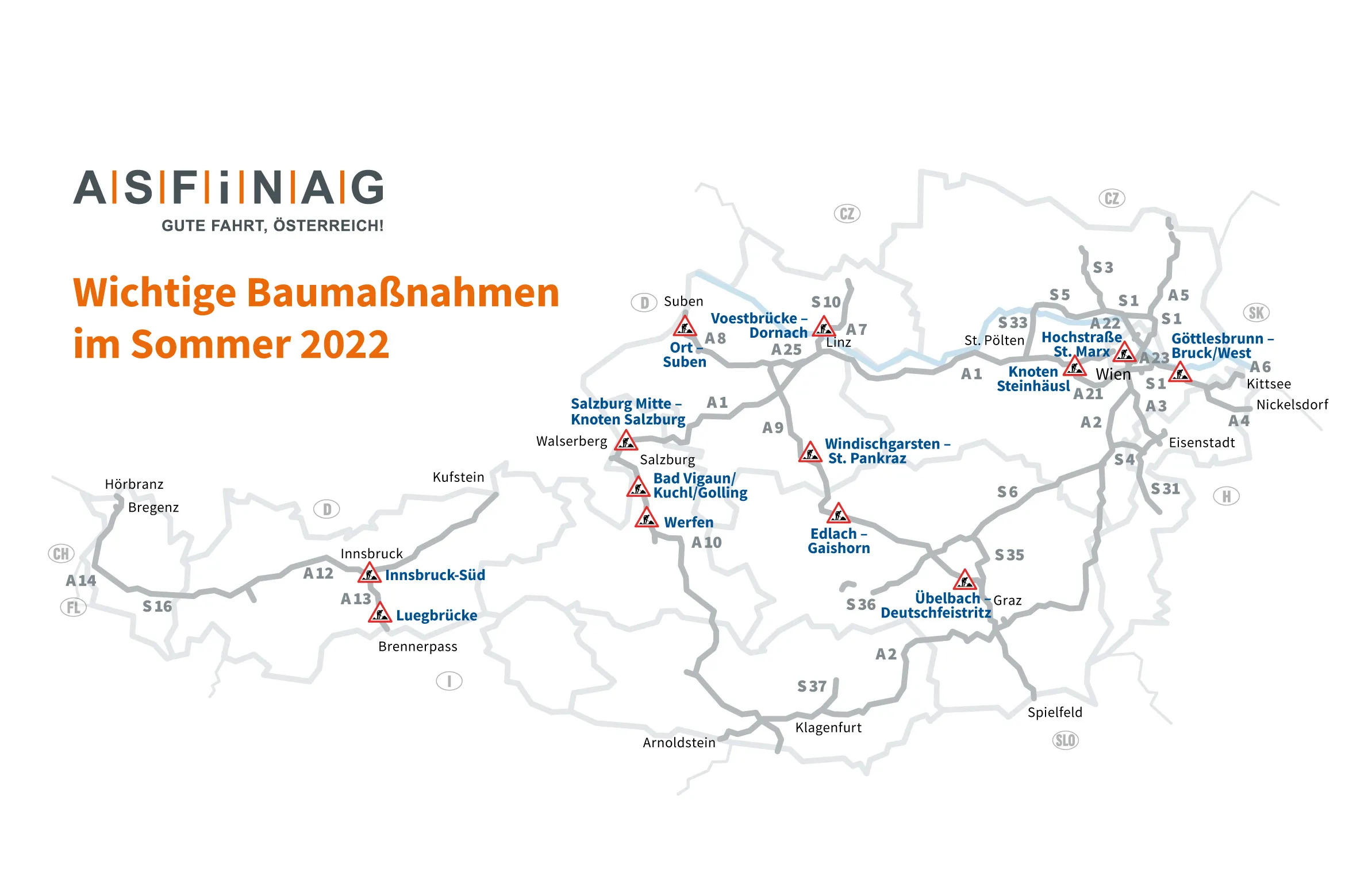 „Finden sich Baustellen auf wichtigen Reiserouten, dann sind die Baumaßnahmen absolut notwendig und lassen sich aufgrund der Arbeitsintensität oder Wichtigkeit nicht zu anderen Zeiten durchführen“, sagt Andreas Fromm, Geschäftsführer der ASFINAG Bau Management GmbH, „wird in der heißen Jahreszeit saniert, dann hat das aber auch noch zwei weitere Gründe. Es geht um unaufschiebbare akute Instandsetzungen oder wir nutzen in Ballungsräumen Zeitfenster mit weniger Berufsverkehr".